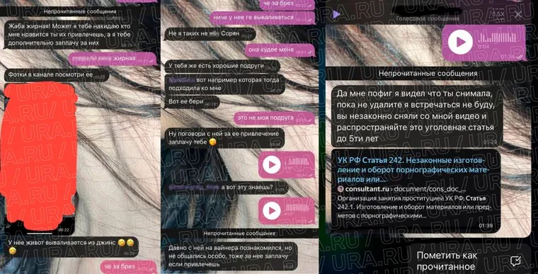 Позже предполагаемое видео, на котором мужчина совращает школьницу, попало в закрытый telegram-канал. Предположительно, когда подозреваемый узнал об этом, то стал требовать, чтобы кадры удалили (есть в переписке на скрине). В свердловском управлении СКР тему не комментируют.