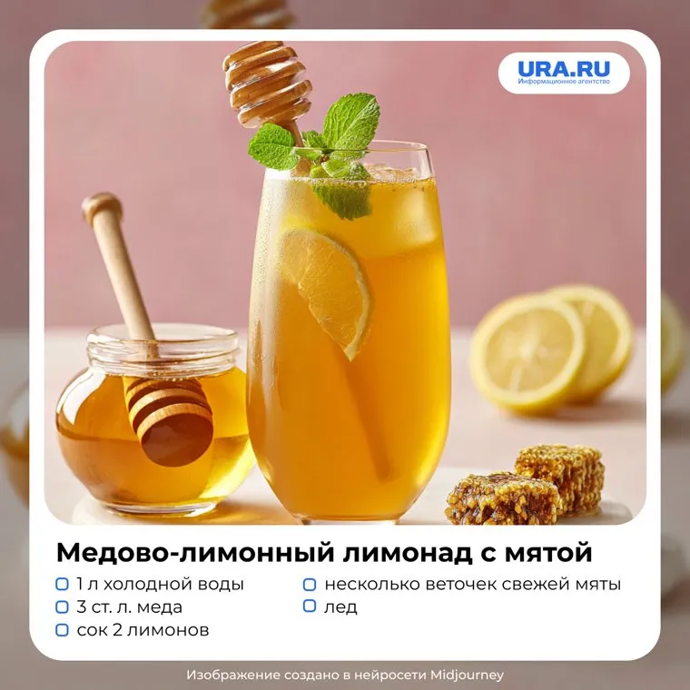 Растворите мед в небольшом количестве теплой воды, добавьте лимонный сок, мяту и лед. Долейте холодной водой и подавайте.