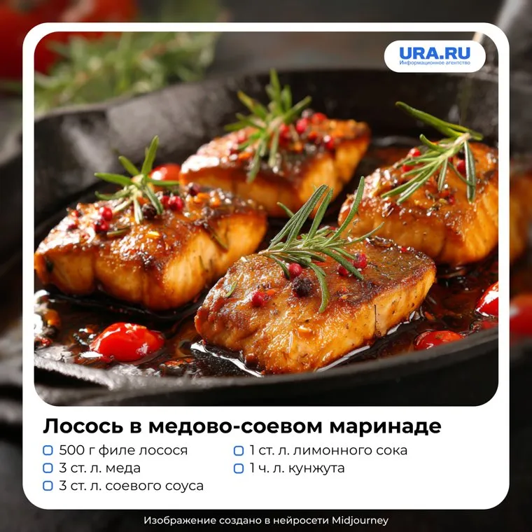Смешайте мед, соевый соус и лимонный сок, замаринуйте рыбу на 20–30 минут. Запекайте при 200°C 15–20 минут, посыпьте кунжутом перед подачей.