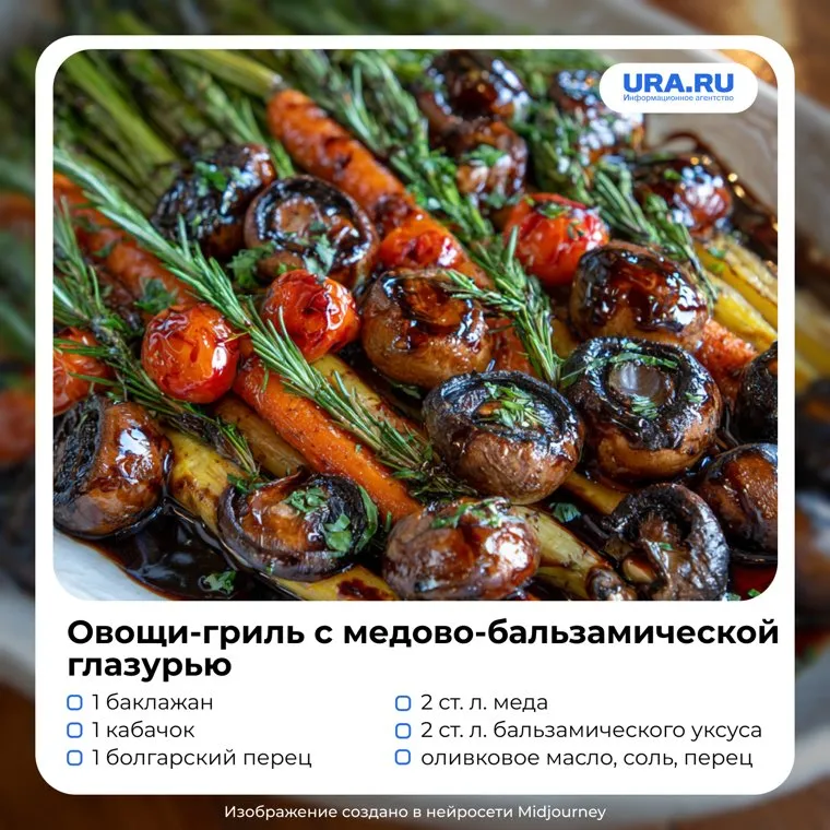 Нарежьте овощи, обжарьте на гриле или сковороде. Смешайте мед с уксусом, полейте овощи и прогрейте еще минуту.