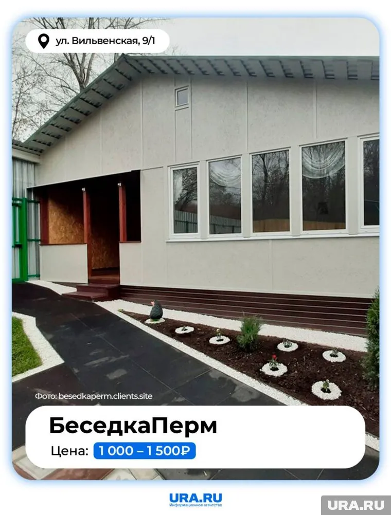 Место отдыха «БеседкаПерм» находится на улице Вильвенской, 9/1. Здесь в аренду сдается теплая беседка с мангальной зоной. Она стоит от 1000 до 1500 рублей в зависимости от дня недели. Дети могут играть в песочнице летом и кататься с горки зимой. На территории есть летняя терраса-сцена для танцев.