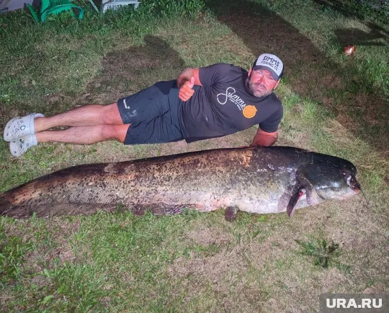 Экс-хоккеист челябинского «Трактора» поймал гигантского сома на Волге. Фото