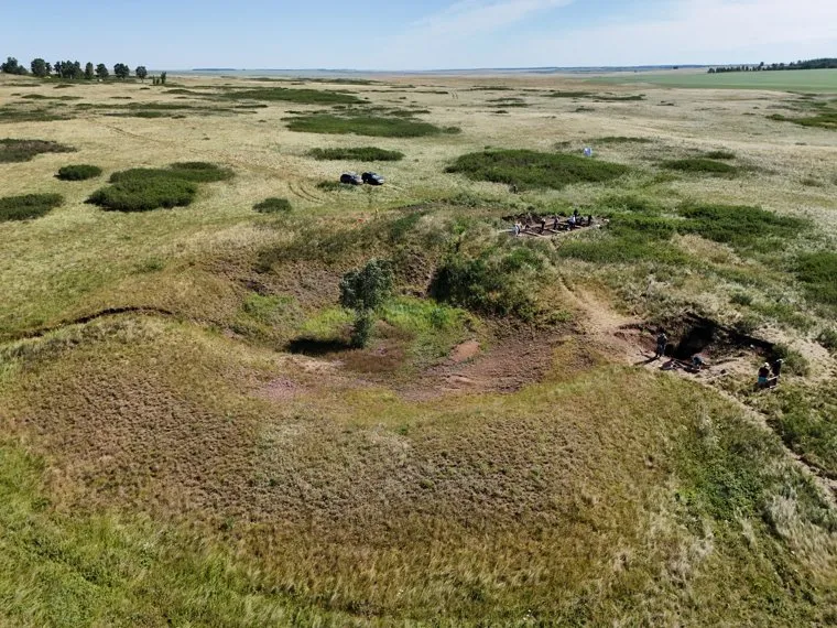 Ключевым же объектом в сезоне 2025 года для ученых ФНЦ МиГ УрО РАН и ЮУрГУ стала шахта бронзового века — вертикальная горная выработка, расположенная к юго-востоку от центрального карьера. В древности она была засыпана, поэтому до наших дней дошла в виде небольшого задернованного углубления на поверхности диаметром до 10 метров.