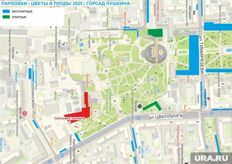 Также в связи с проведением выставки парковка у Дворца культуры Железнодорожников будет недоступна. Автовладельцам предлагается воспользоваться платными парковочными местами у театра драмы имени Наума Орлова или возле кулинарной мастерской «Рататуй», а также бесплатными местами, которые располагаются по всей территории вокруг горсада.