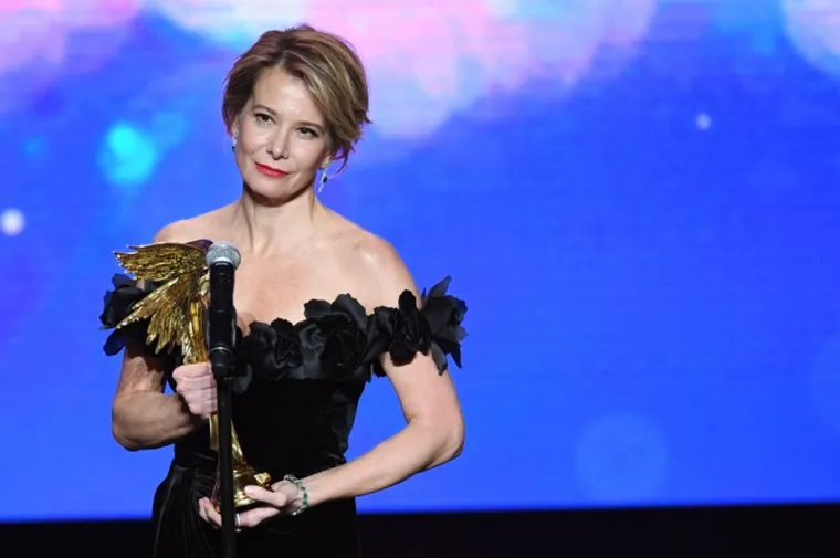 Актриса Юлия Высоцкая, получившая приз в номинации «Лучшая женская роль» за фильм «Рай», на XXX церемонии вручения Национальной кинематографической премии «НИКА»
