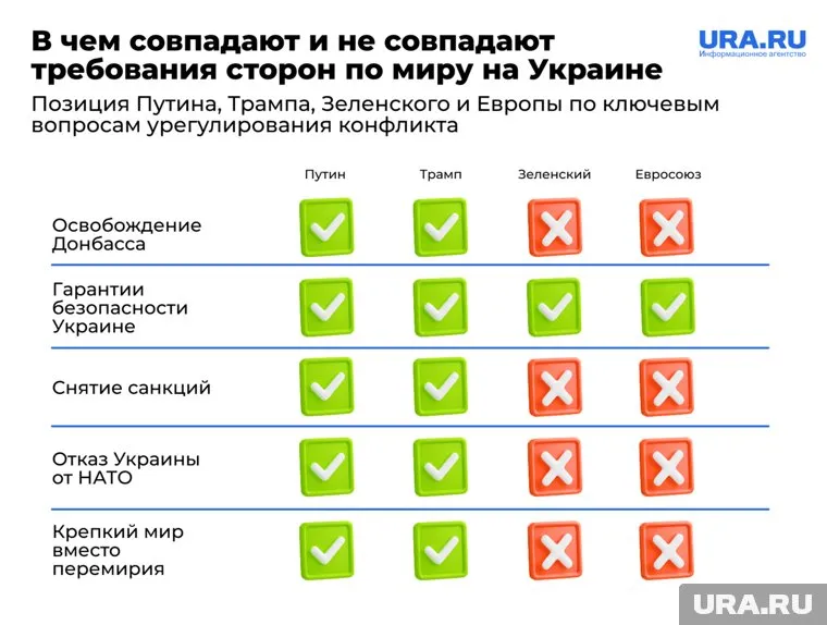 Какие требования для достижения мира озвучили ЕС, США, РФ и Украина после встречи Путина и Трампа. Инфографика