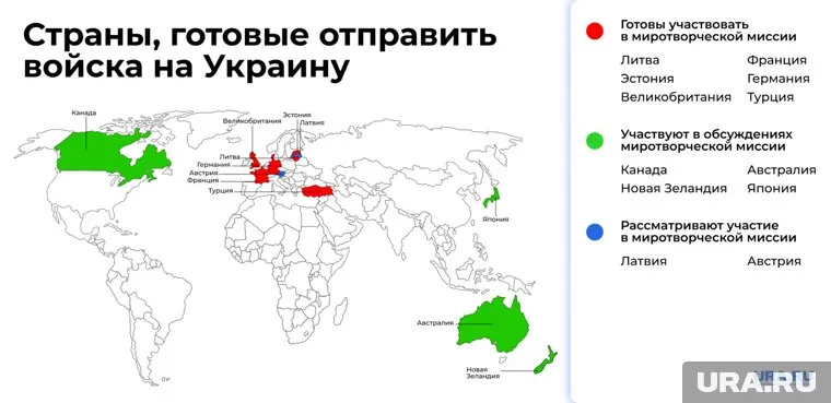 Какие страны могут отправить войска на Украину и что это значит для России. Карта