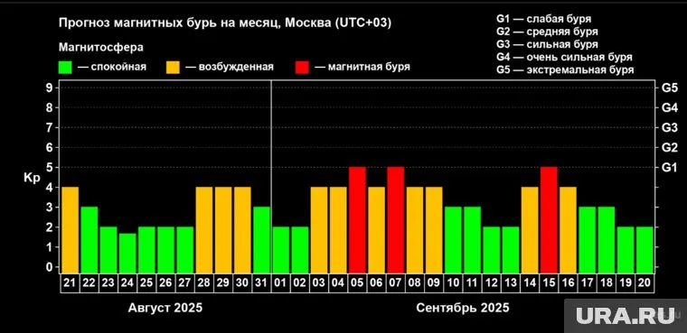 - 5 сентября — возможна магнитная буря, активность выше среднего.