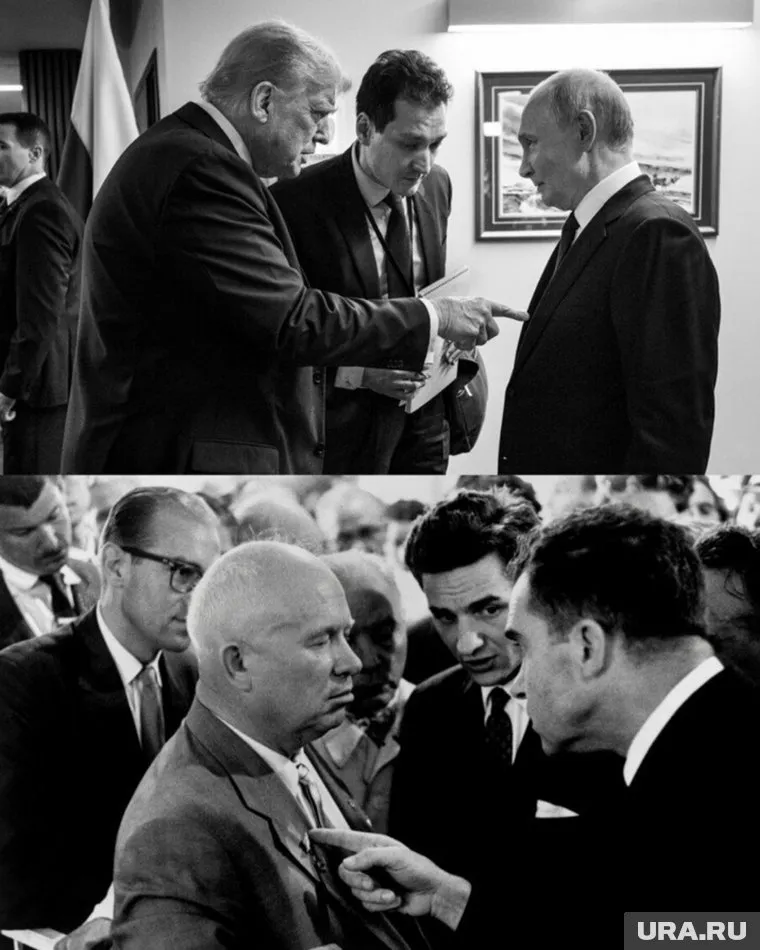Президент США Дональд Трамп опубликовал фотографию с недавней встречи с российским лидером Владимиром Путиным, сравнив этот снимок с историческим кадром 1959 года между вице-президентом США Ричардом Никсоном и первым секретарем ЦК КПСС Никитой Хрущевым. Соответствующий пост размещен в X, а также в Truth Social.