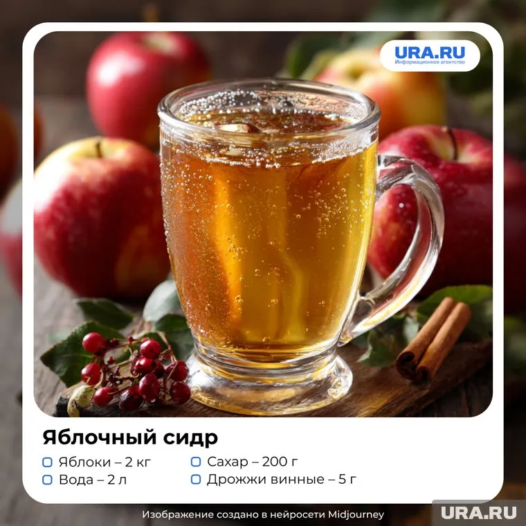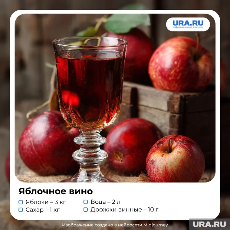 Сделайте сок из яблок, добавьте воду, сахар и дрожжи.
