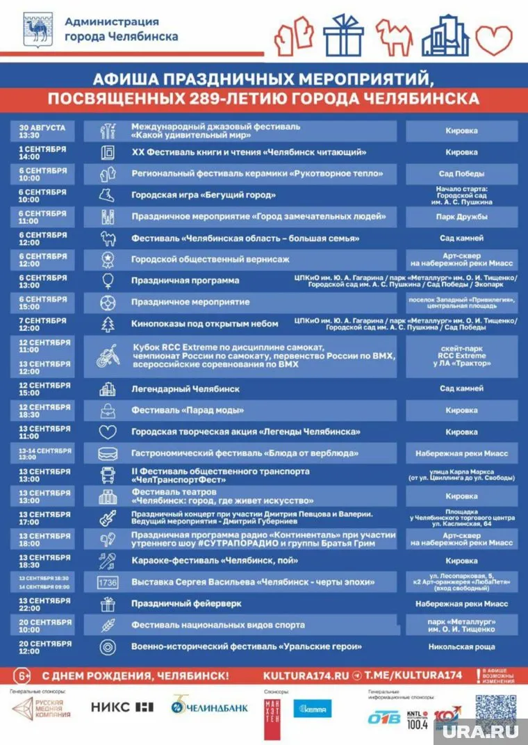24 масштабных мероприятия пройдут в честь дня рождения Челябинска