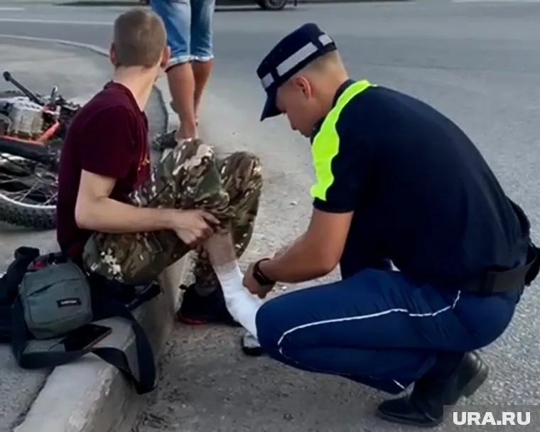 «На место дорожно-транспортного происшествия, в котором столкнулись легковой автомобиль и питбайк, оперативно прибыли сотрудники отдельного батальона ДПС Госавтоинспекции УМВД России по г. Кургану. Инспекторы обнаружили подростка, сидевшего на обочине с кровоточащей раной на ноге. Один из сотрудников ДПС оказал первую помощь пострадавшему, наложив повязку», — пишут в ГАИ.