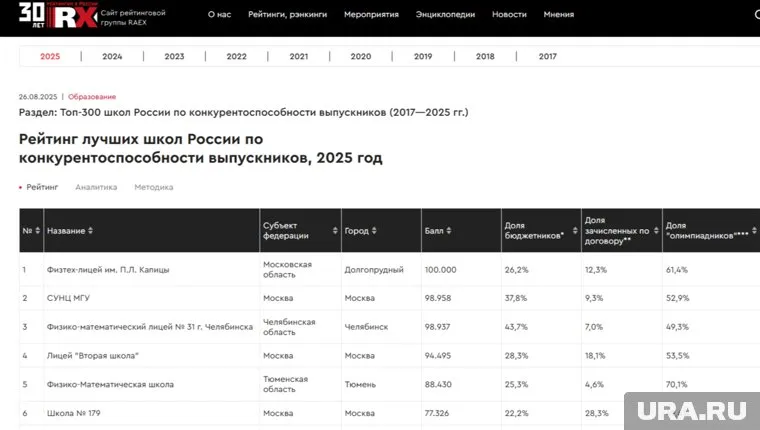 Челябинский лицей стал третьим в рейтинге школ России, обогнав московскую «Вторую школу». Скрин