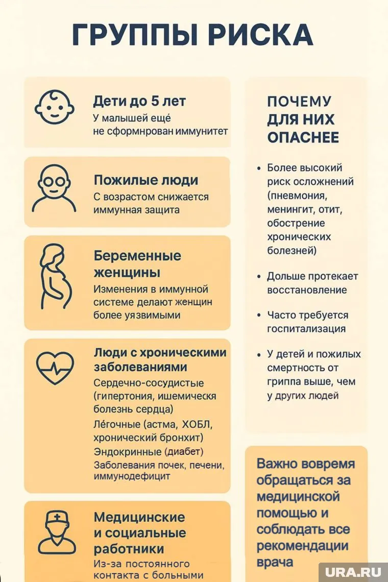 ОРВИ и особенно грипп опасны не только своими симптомами, но и осложнениями — пневмония, бронхит и так далее. Есть группы людей, для которых заболевание протекает тяжелее всего: