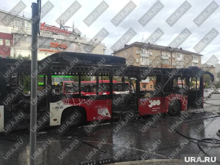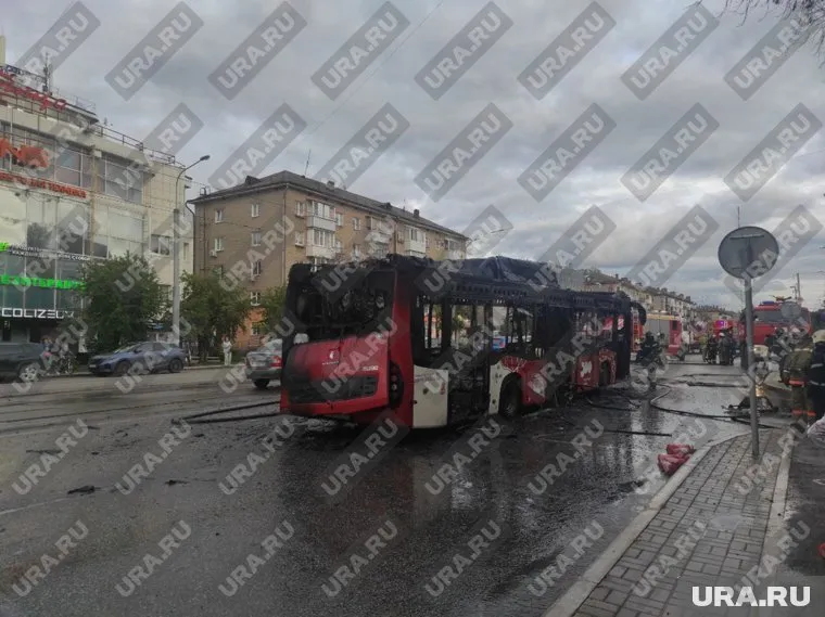 Корреспондент URA.RU передает с места событий, что пострадавшее транспортное средство следовало по маршруту № 36 «Театр Ироничная компания — Вышка-2». Автобус сгорел полностью.