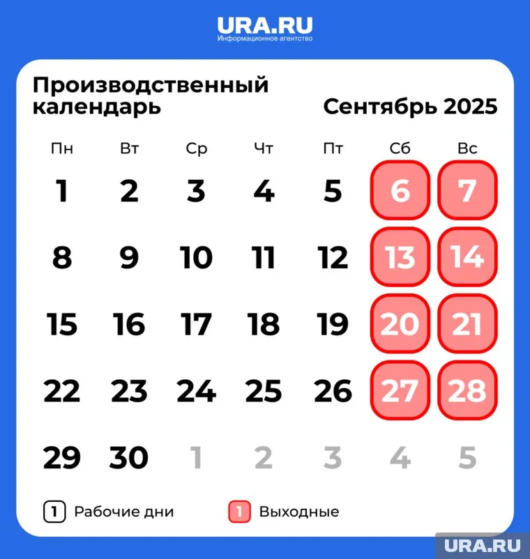 В сентябре 2025 нас ждет 30 дней, из них 22 - рабочие