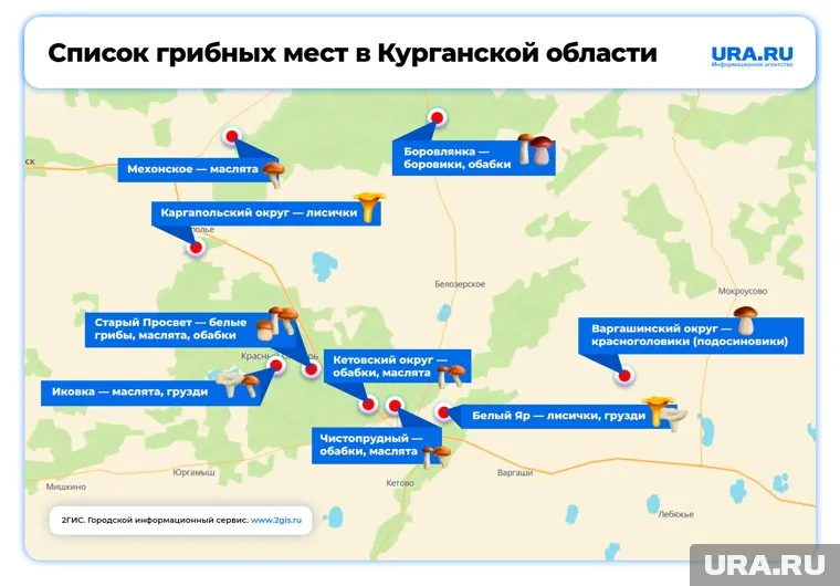Урожай грибов в Курганской области: где искать белые грибы, лисички и грузди. Карта