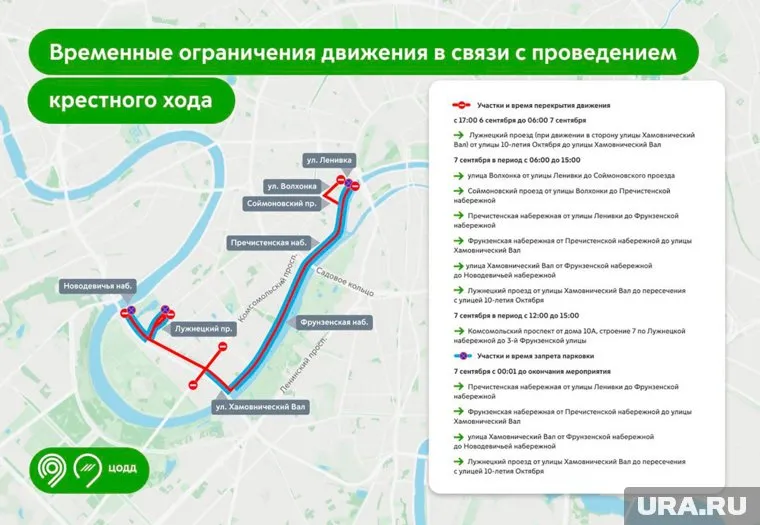 В связи с проведением крестного хода 7 сентября 2025 года в центре Москвы будут введены временные ограничения движения: