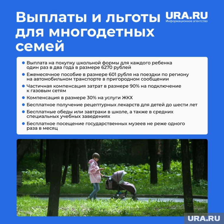 Количество многодетных семей в Свердловской области за 10 лет увеличилось в три раза. На сегодняшний день число таких семей достигает 76 тысяч. Помимо федеральных мер поддержки, в регионе действуют и свои льготы. Например, выплаты за покупку школьной формы, компенсация услуг ЖКХ и бесплатное питание. О других преимуществах многодетных семей читайте в материале URA.RU.