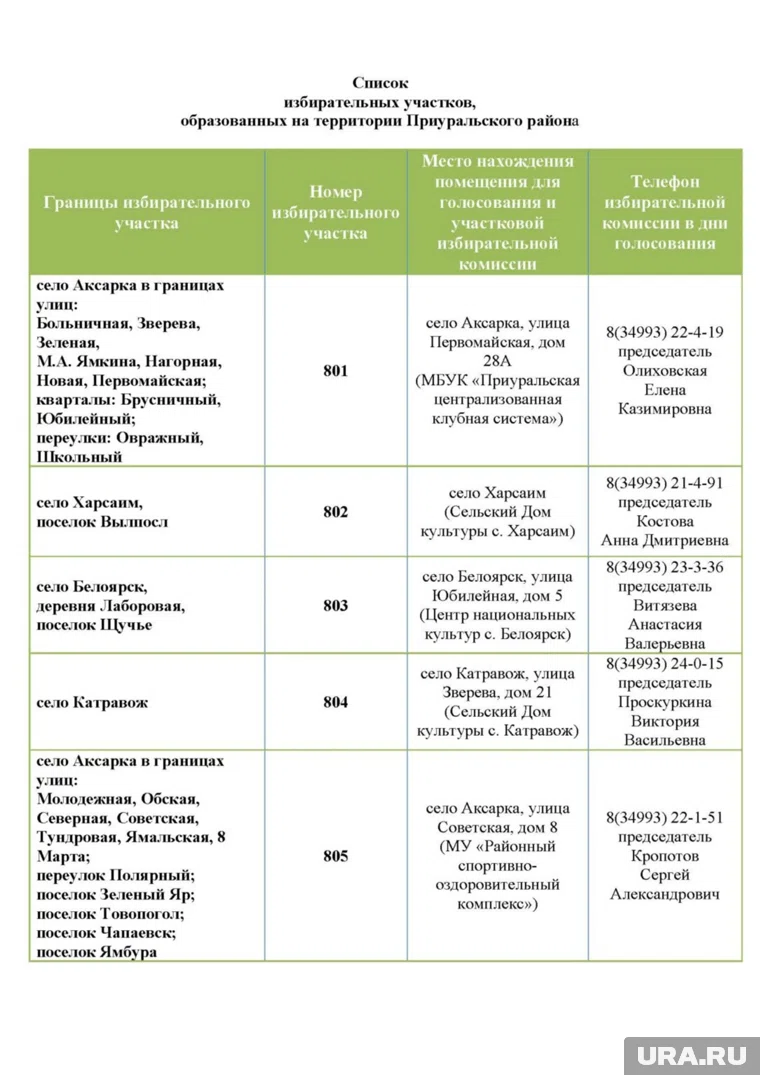 Всего в Приуральском районе будет работать пять избирательных участков. Подробнее узнать о них можно ниже: