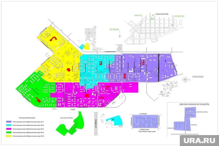 Всего в Муравленко будет работать 10 избирательных участков. Так, кандидатов многомандатного округа №1 будут выбирать избиратели, голосующие в школе №2 и школе «Взлет», кандидатов многомандатного округа №2 — в музее и доме культуры, округа №3 — в центре «Протон» и многопрофильном лицее, №4 — в школе №5 (там будут расположены сразу две комиссии — 408 и 409), а по округу №5 голосовать будут в спортивной школе «Муравленко», прогимназии «Эврика» и в спортивном комплексе «Лидер». Подробнее о том, как делятся округа можно посмотреть ниже: