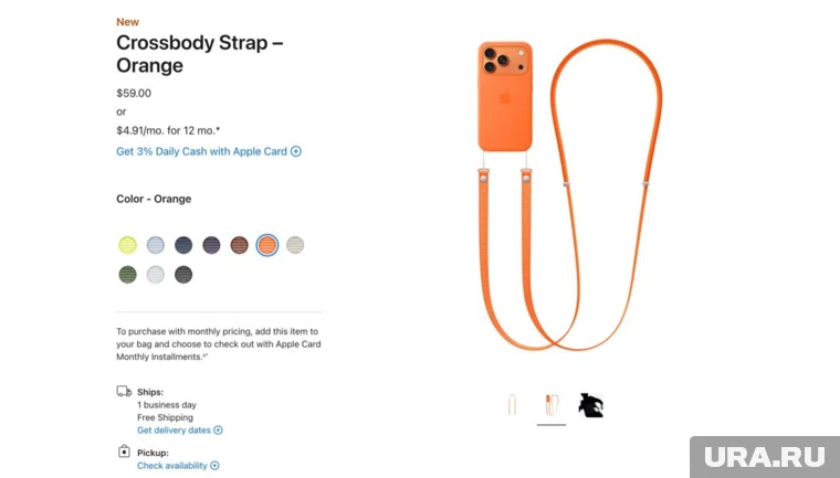 Новшеством этого года стал ремешок через плечо для линейки iPhone. Стоит такое удовольствие 5 000 рублей. Он продается отдельно и крепится к чехлу, за который придется заплатить ровно столько же. На другие чехлы его повесить невозможно из-за технических особенностей.
