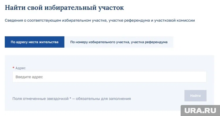 Поиск избирательного участка на сайте Центризбиркома РФ