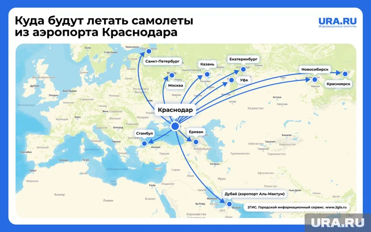 По каким маршрутам будут летать самолеты их Краснодара