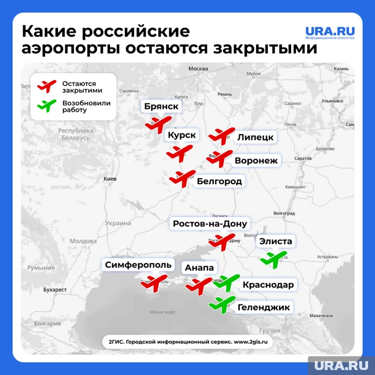 Какие аэропорты в России остаются закрытыми из-за СВО. Карта