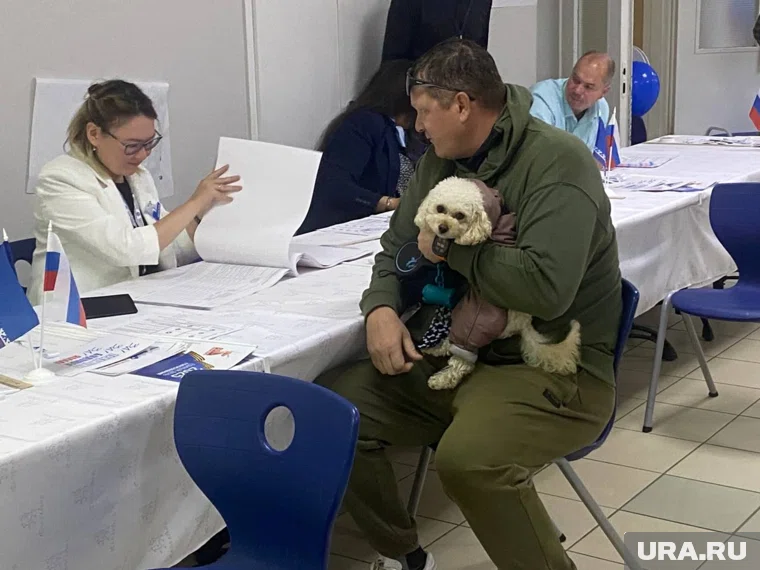 09:04 Собака на избирательном участке стала чем-то необычным. Мужчину сперва остановили на входе, а потом сотрудники комиссии начали его фотографировать.