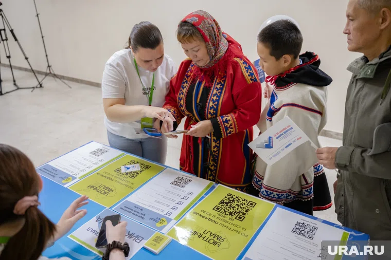09:11 Проголосовавшие жители Ямала направляются к стойкам с акцией «Уютный Ямал», где проходит розыгрыш призов. Участники оживленно обсуждают шансы на выигрыш и изучают условия лотереи.