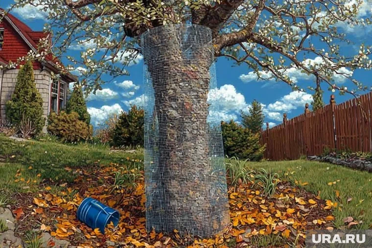 Спасти яблони от холодов и грызунов можно с помощью сетки