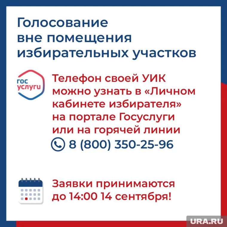 12:17 Избирательная комиссия Свердловской области информирует граждан: в случае невозможности лично посетить избирательный участок для голосования, то можно оформить заявление о проведении голосования на дому. Для этого необходимо подать соответствующее уведомление не позднее 14:00 14 сентября.