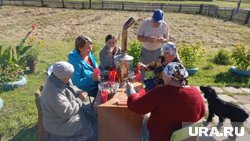 На избирательном участке в Звериноголовском округе устроили настоящий праздник. В селе Отряд-Алабуга звучат частушки, накрыт стол для избирателей и предлагают всем чай из самовара.