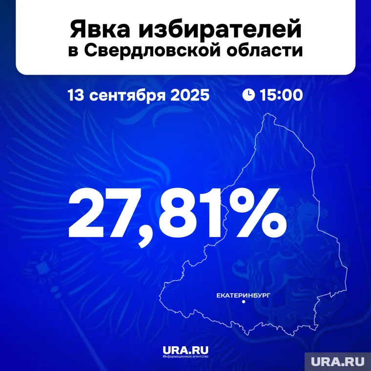 Явка на выборах губернатора Свердловской области в ходе второго дня голосования 13 сентября на 15:00 часов составила 27,81%. Об этом сообщил облизбирком. Данные опубликованы на официальном сайте комиссии.