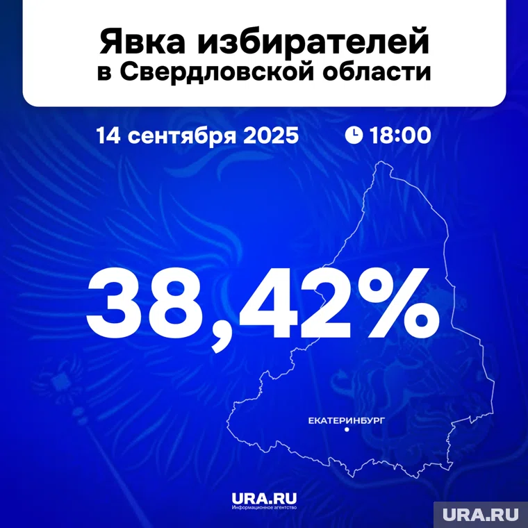 Явка на выборах губернатора Свердловской области на 18:00 третьего дня голосования составила 38,42%. В Екатеринбурге проголосовали 31,18%. Данные публикует облизбирком.