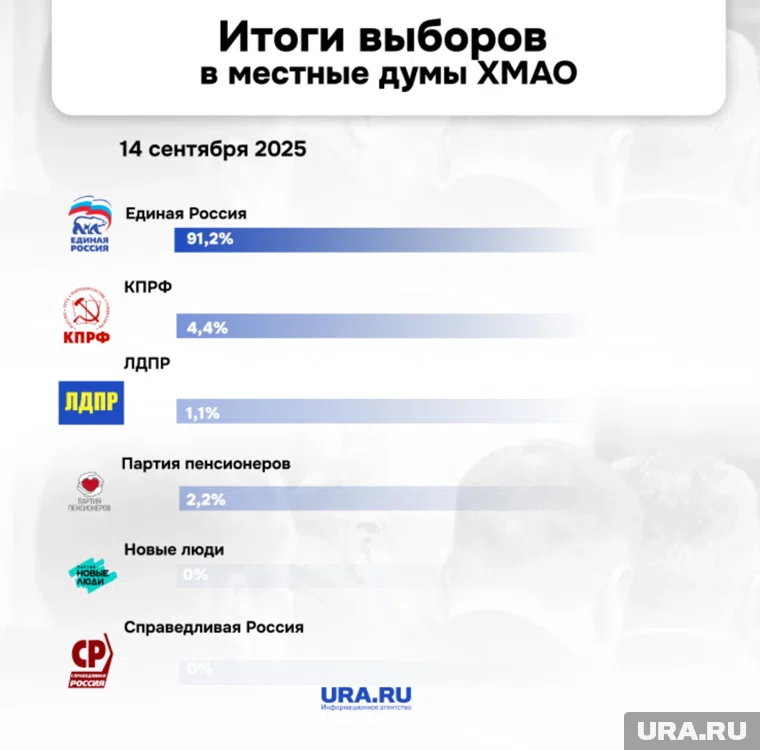 Единороссы одержали разгромную победу на выборах в ХМАО. Инфографика