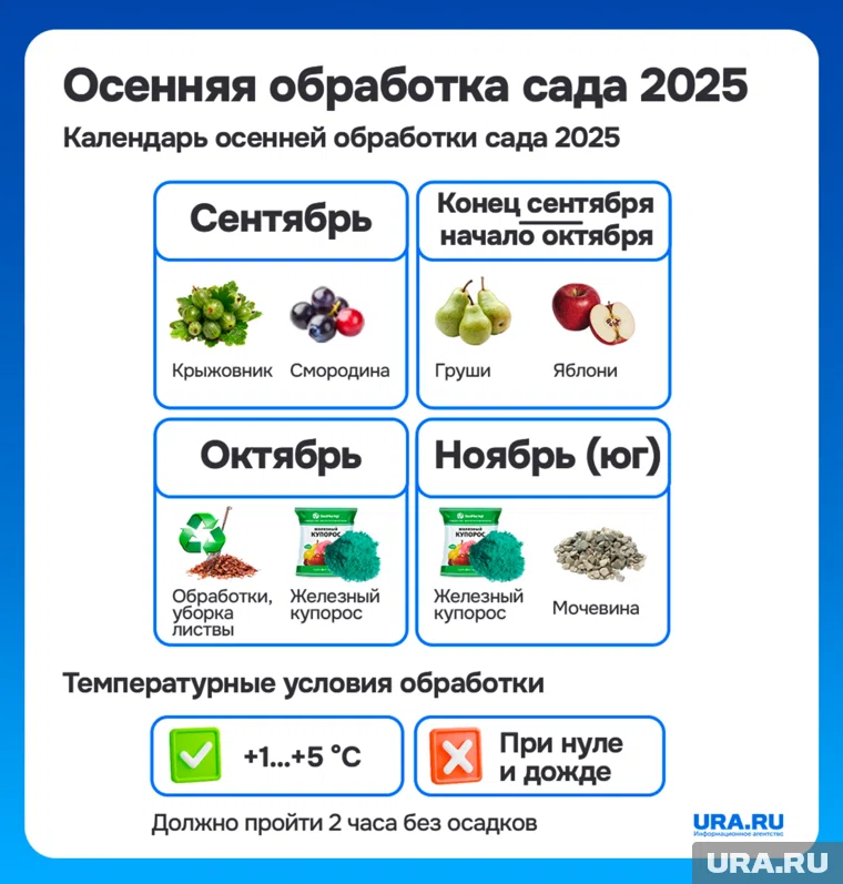 Но осеннее опрыскивание сада защищает от грибков и вредителей, зимующих в коре, листве и почве. Теплая осень 2025 года (средняя температура в сентябре +15–20 градусов в центральной России, +20–25 градусов на юге) усиливает риск парши, ржавчины и мучнистой росы. По данным агрономов, осенняя обработка снижает вероятность болезней на 70–80%, укрепляя растения перед холодами.