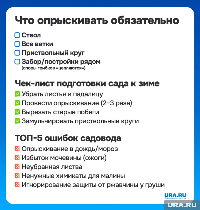 Осенью важно опрыскать сад от болезней и вредителей — тогда весной и летом деревья порадуют урожаем. Какие препараты выбрать и как правильно обработать деревья и кустарники — в материале URA.RU.