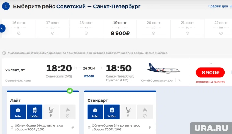 «Рейс Советский — Санкт-Петербург будет выполняться с 19 сентября по 31 декабря 2025 года. Перелет доступен по субсидированным тарифам», — сообщила компания «Северсталь» на официальном сайте. По данным Росавиации, власти Югры софинансируют больше половины стоимости рейса — 51%.
