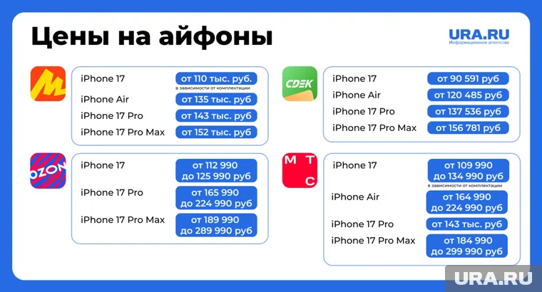 Сколько должен работать россиянин, чтобы купить iPhone 17: цена новых флагманов Apple. Инфографика