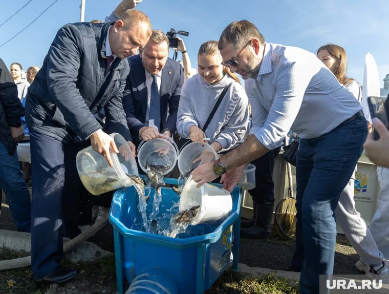 Тысячи сазанов и белых амуров выпустили в свердловский пруд. Фото