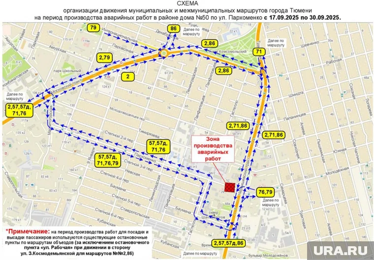 В Тюмени семь автобусных маршрутов будут следовать по новой траектории до 30 сентября. Все из-за перекрытия проезда на улице Пархоменко. Об этом URA.RU рассказали в администрации города.