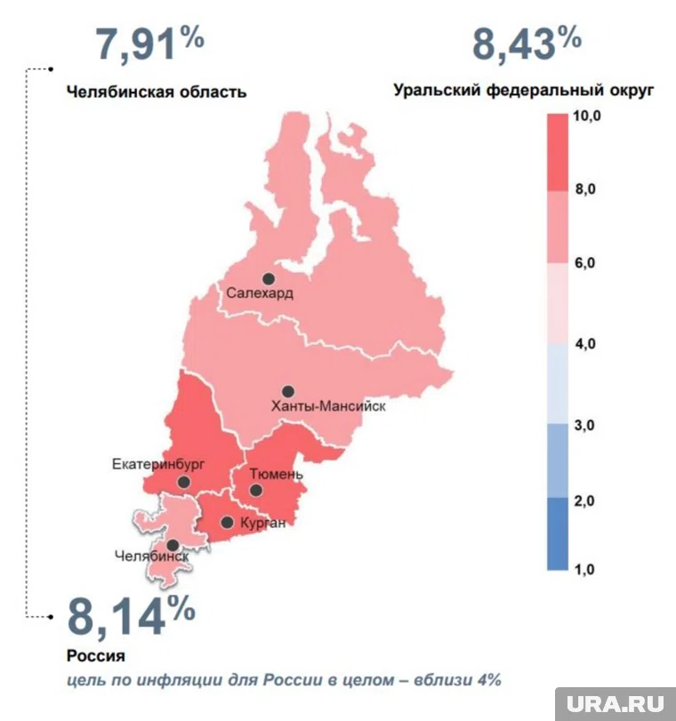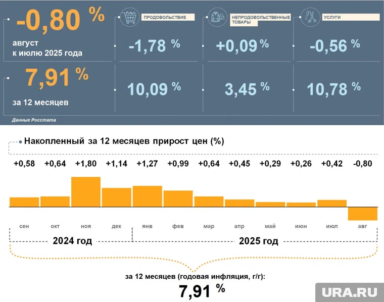 В Челябинской области годовая инфляция в августе снизилась до 7,91%. Инфографика