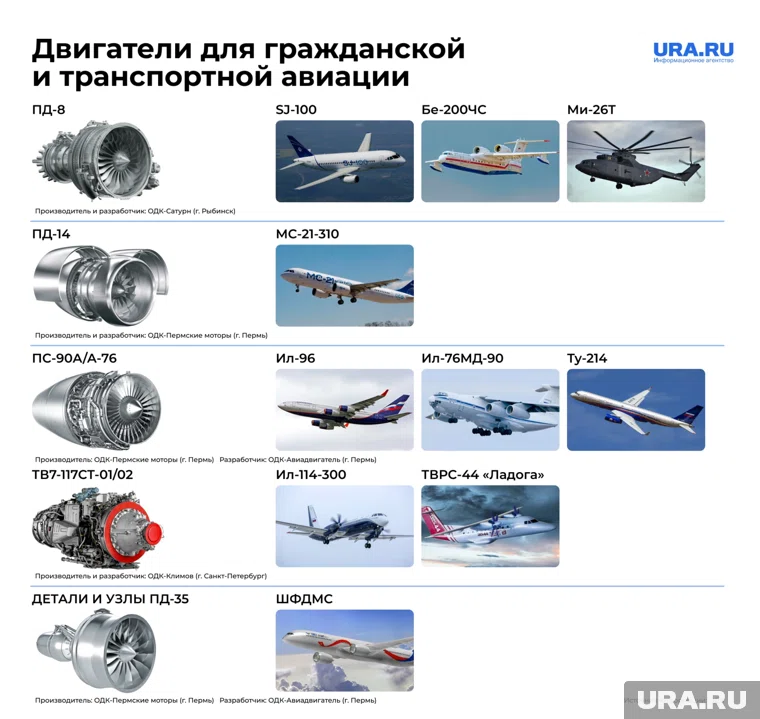 Президент Владимир Путин уделил особое внимание созданию отечественных авиадвигателей — главной детали самолета. В ходе рабочей поездки в Пермь 19 сентября ему доложили о перспективном двигателе ПД-35 и других наработках. Президент уже второй раз за месяц посещает заводы, где делают авиадвигатели, — 5 сентября он ездил в Самару. Как объяснили эксперты URA.RU, перед Россией стоит задача выпустить целую серию полностью отечественных самолетов, и она сможет это сделать — благодаря советским и новейшим технологиям.