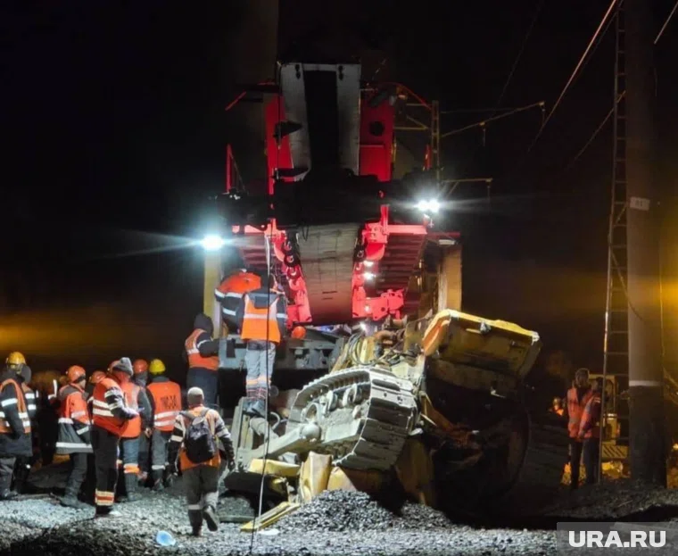 «При движении укладочного поезда произошел сход подвижного состава, с выездом на участок с демонтированной рельсошпальной решеткой и столкновением с бульдозером. Один человек погиб на месте, второй скончался в медицинском учреждении», — говорится в сообщении.