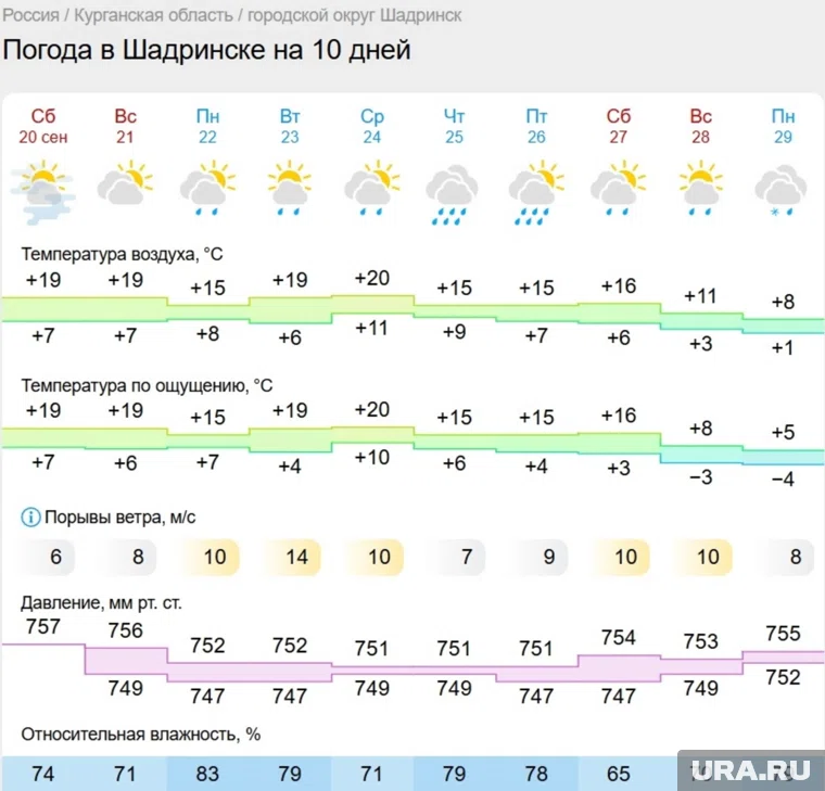 «В Кургане и Шадринске с понедельника начнутся дожди, которые усилятся к концу недели. В понедельник, 29 сентября, вероятно выпадение снега с дождем», — указано в прогнозе Gismeteo.