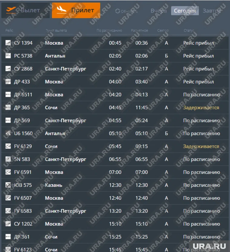 Фото: Скрин онлайн-табло аэропорта Пермь