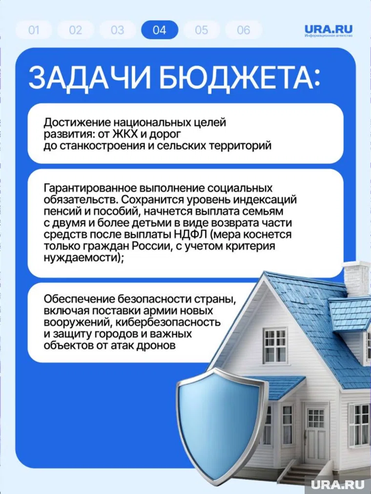 Отдельное внимание министерство уделило обеспечению устойчивости экономики и социальной стабильности. Финансы будут направлены на поддержку семей с детьми, индексацию социальных выплат и финансирование инфраструктурных проектов. О налоговых изменениях и на что будет выделен бюджет — в материале URA.RU.