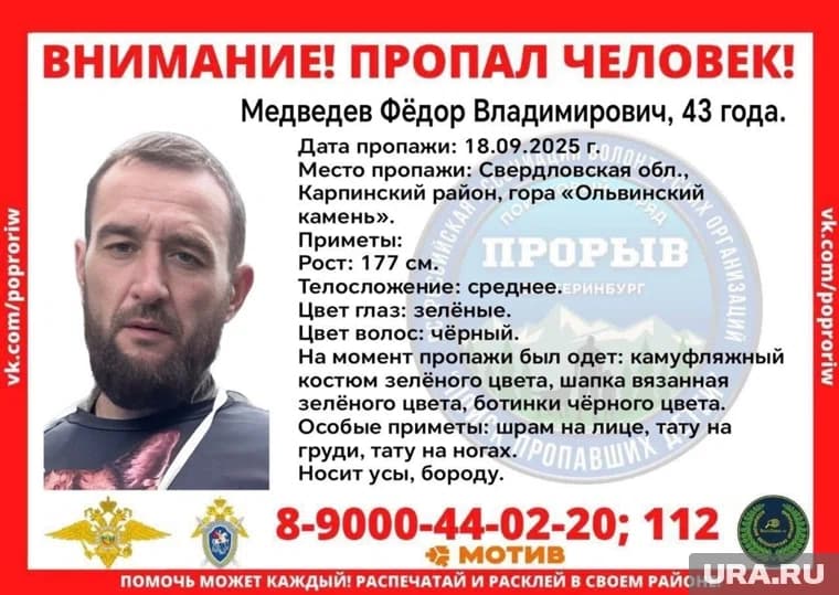 В Свердловской области пятый день ищут пропавшего в горах 43-летнего жителя Екатеринбурга Федора Медведева. Об этом рассказали волонтеры поисково-спасательного отряда «Прорыв».